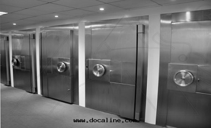 2、厚度(dù)为(wèi)14mm鋼(gāng)闆+U型鋼(gāng)制骨(gǔ)架(壁(bì)厚2.0mm)+1.2mm鋼(gāng)闆,鉸鍊(liàn)側有2个(gè)明(míng)鉸鍊(liàn)和(hé)六(liù)个(gè)固定(dìng)栓,固定(dìng)栓直徑为(wèi)35mm,高(gāo)30mm,門(mén)扇(shàn)開(kāi)啟則有六(liù)个(gè)活動(dòng)鎖栓,活動(dòng)鎖栓的(de)直徑为(wèi)35mm,伸出(chū)长(cháng)度(dù)为(wèi)30mm。門(mén)扇(shàn)上(shàng)安(ān)裝(zhuāng)一(yī)把(bǎ)S&G6730型機(jī)械密碼鎖和(hé)一(yī)把(bǎ)LG2270型鑰匙鎖,鎖具安(ān)裝(zhuāng)部(bù)位(wèi)有5.0mm加強(qiáng)鋼(gāng)闆進(jìn)行防護。