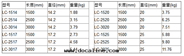 常用(yòng)型号(hào)規格表(biǎo)