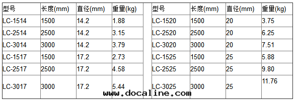 常用(yòng)型号(hào)規格表(biǎo)