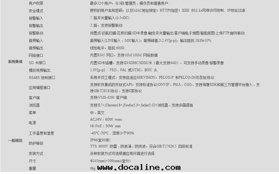 特性(xìng):200 万(wàn)像素紅(hóng)外超低(dī)温(wēn)网(wǎng)絡高(gāo)清(qīng)高(gāo)速智能(néng)球機(jī)