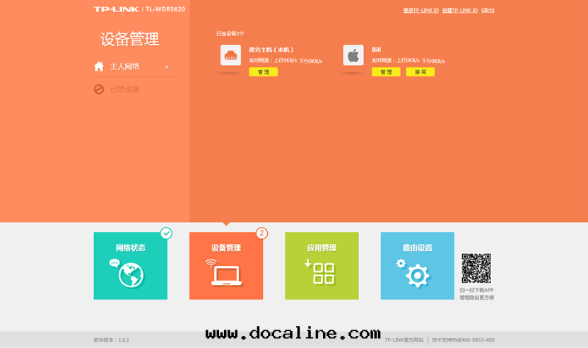 采用(yòng)清(qīng)新(xīn)直觀的(de)交互界面(miàn),可(kě)查看(kàn)實(shí)时(shí)网(wǎng)速、連(lián)接設備等豐富信(xìn)息,狀态一(yī)目了(le)然,還(huán)支持(chí)限速、禁用(yòng)