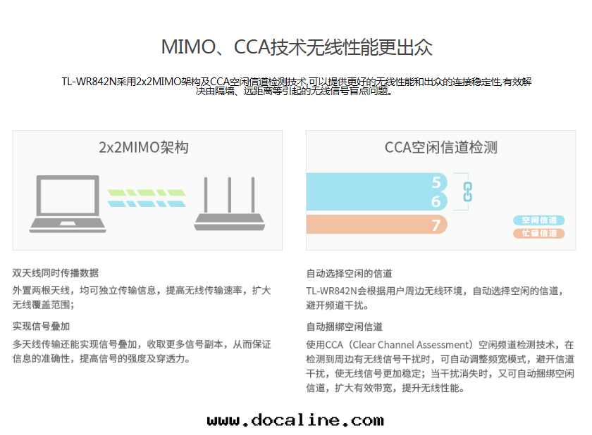 11N技術(shù) 300Mbps無線(xiàn)傳輸速率 TL-WR842N采用(yòng)11N無線(xiàn)技術(shù),無線(xiàn)傳輸速率可(kě)达300Mbps,可(kě)滿足更(gèng)多(duō)的(de)無線(xiàn)客户端接入(rù)。在(zài)客户端數量(liàng)相同(tóng)时(shí)能(néng)为(wèi)每个(gè)客户端提(tí)供更(gèng)高(gāo)的(de)無線(xiàn)带(dài)宽(kuān),使局(jú)域网(wǎng)內(nèi)的(de)數據(jù)
