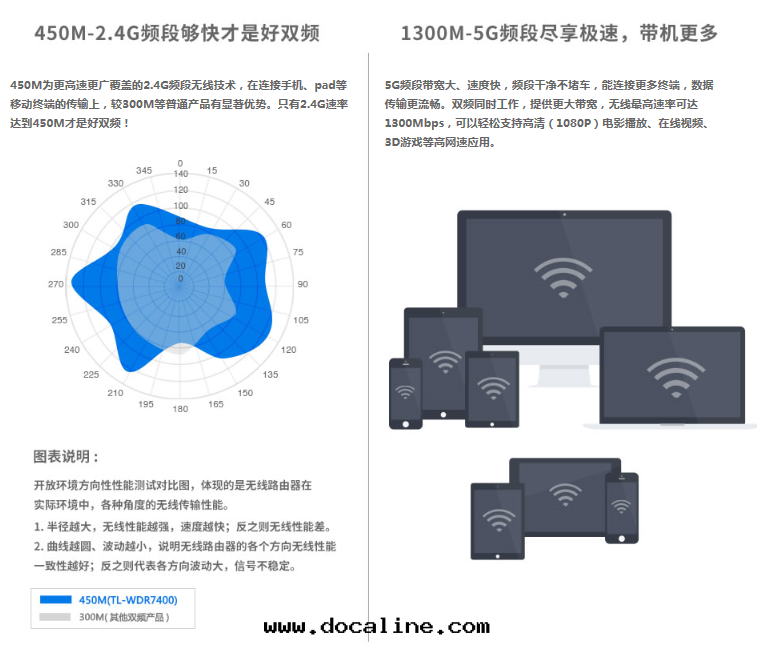1750M-無拘無束(shù)的(de)應(yìng)用(yòng)體(tǐ)验(yàn)全(quán)新(xīn)11AC換代(dài)技術(shù),1750Mbps极(jí)速奔行。2.4GHz頻段(duàn),采用(yòng)450M無線(xiàn)速率,傳輸遠(yuǎn)、易穿牆(qiáng)、Wi-Fi信(xìn)号(hào)覆蓋廣;5GHz頻段(duàn),坐擁1300M千(qiān)兆(zhào)無線(xiàn),用(yòng)户少(shǎo)、不(bù)堵塞,信(xìn)道(dào)純淨干(gàn)擾少(shǎo);两(liǎng)个(gè)頻段(duàn)都高(gāo)速,才不(bù)愧双(shuāng)頻路(lù)由(yóu)。
