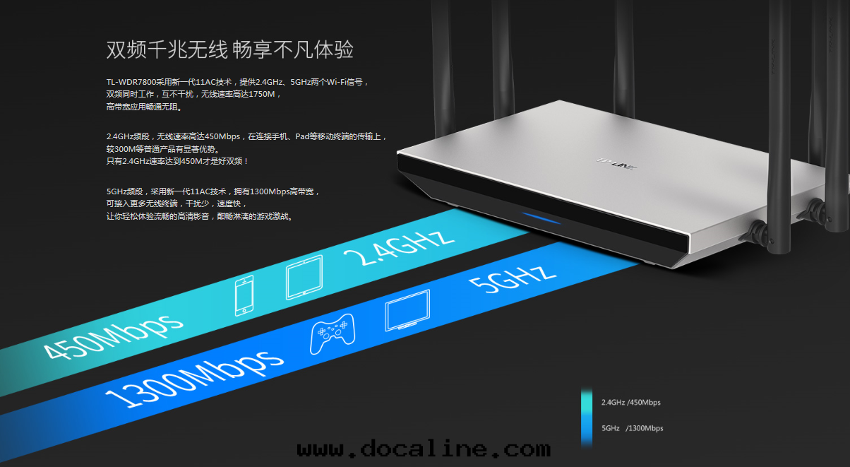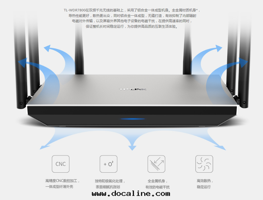 AC1750双(shuāng)頻無線(xiàn)路(lù)由(yóu)器TL-WDR7800 全(quán)金(jīn)屬機(jī)身(shēn)