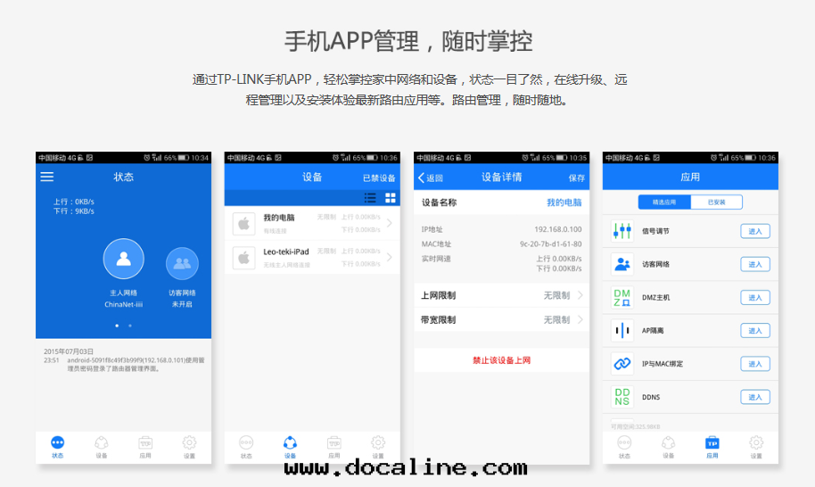 采用(yòng)清(qīng)新(xīn)直觀的(de)交互界面(miàn),可(kě)查看(kàn)實(shí)时(shí)网(wǎng)速、連(lián)接設備等豐富信(xìn)息,狀态一(yī)目了(le)然,還(huán)支持(chí)限速、禁用(yòng)